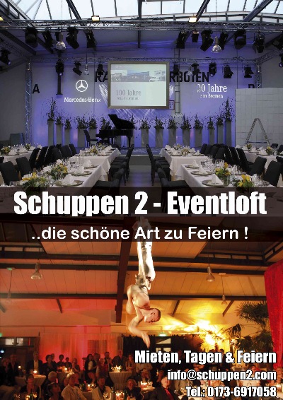 Kontakt Rosenbaum Events und Schuppen 2-Eventloft: Tel.: 0421-381000 Fax: 0421-3801296 Mobil: 0173-6917058 E Mail: info@rosenbaum-events.de & info@schuppen2.com